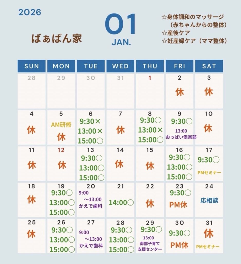 【八代市】ベビーマッサージ&産後ケア |「ばあばん家」新年のご挨拶