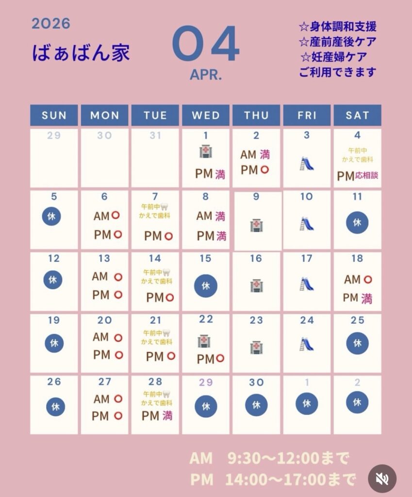 4月のばぁばん家の予定表が出来ました◎